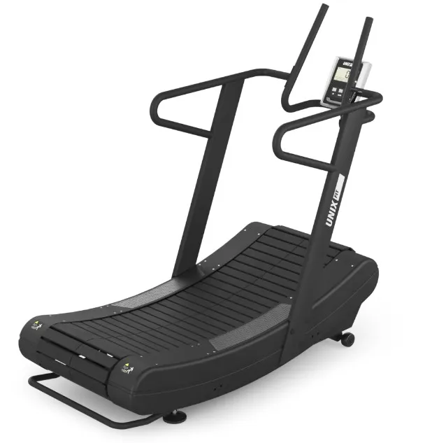 Механическая беговая дорожка профессионального уровня UNIX Fit PRO (UC-9700)Идеальным выбором для занятий спортом является современный профессиональный кардио тренажер гусеничного типа UNIX Fit UC-9700, который обеспечивает максимальный комфорт и безопасность. Беговая дорожка с изогнутым полотном гарантирует плавное движение без ударных нагрузок на суставы, что делает ее подходящей для всех возрастов и уровней физической подготовки. Пользователь приводит в движение полотно тренажера с помощью усилия, а скорость регулируется силой воздействия. Кардио тренажер с прочным алюминиевым полотном размером 150 х 43 см имеет антискользящее покрытие. Вес пользователя до 230 кг легко выдерживается этой конструкцией. Неограниченная скорость бега позволяет пользователю приложить дополнительные, высокоинтенсивные усилия, чтобы ускорить движение по дорожке и увеличить продуктивность тренировок. Этот тренажер обладает улучшенной эффективностью на 20% по сравнению с обычной беговой дорожкой, способствуя тренировке всех групп мышц, улучшая выносливость, силу и координацию.