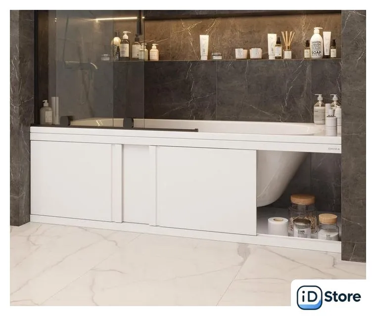 лицевой (фронтальный) экран, универсальный, под ванну длиной 150 см, раздвижной, прямой, МДФ, профиль: алюминий, с ручками, цвет: белый. Доставим по Минску в день заказа, при оформлении заявки до 14.00. Официальная гарантия.