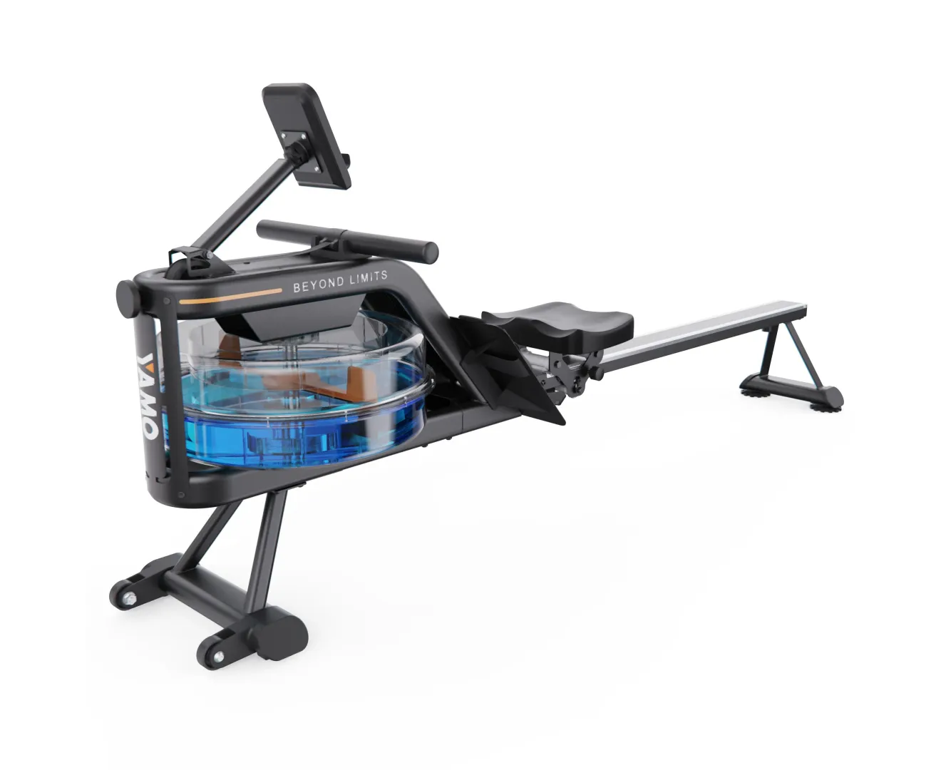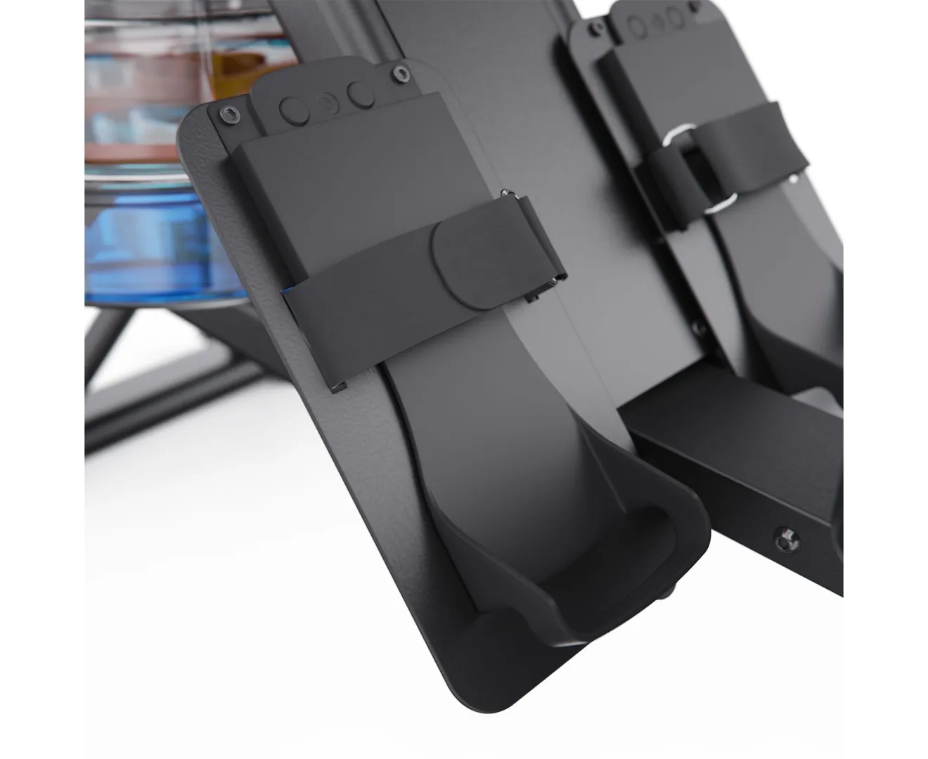 Водное сопротивление создается вращением лопастей в резервуаре, имитируя естественные движения при реальной гребле. Педали регулируются по длине на шесть положений, имеют рифленую поверхность и фиксируются ремешками для надежной постановки стоп.