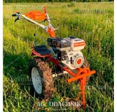 Мотоблок Profi-motors 103L: Надежность в каждой детали - Поиск идеального помощника для работы на земле часто сводится к выбору между ценой и качеством. Мотоблок Profi-motors 103L - это золотая середина. Являясь прямым аналогом популярных немецких моделей 1030-й серии, этот агрегат предлагает ту же производительность и выносливость, но по более привлекательной стоимости. Тяжелый вес (до 120 кг), мощный двигатель и надежный шестеренчатый редуктор делают его незаменимым инструментом для вспашки целины, культивации огорода и транспортировки грузов. Это техника для тех, кто ценит практичность. Силовой агрегат 8.5 сил В основе производительности лежит 4-тактный бензиновый двигатель GX260s мощностью 8.5 л.с. (251 куб.см). Система верхнего расположения клапанов (OHV) обеспечивает отличную тягу во всем диапазоне оборотов и умеренный расход топлива (0.9 л/ч). Мотор оснащен системой легкого запуска Easy Start, которая снижает усилие на тросе стартера. Эффективное воздушное охлаждение позволяет работать без перерывов даже в жаркую погоду. Вместительный бак на 6 литров гарантирует долгую автономность. Универсальность оснастки В базовой версии мотоблок поставляется на колесах 4x8 дюймов с "тракторным" протектором. Однако конструкция допускает установку более крупных колес (5x10 или 6x12), что значительно увеличивает клиренс и проходимость. Для обработки почвы используется комплект из 24 закаленных ножей. Ширина захвата регулируется в диапазоне 80-110 см, что позволяет быстро проходить большие площади. Вес агрегата заставляет фрезы погружаться в землю на глубину до 30 см. Шестеренчатый редуктор В отличие от ременных моделей, здесь используется надежная полностью шестеренчатая трансмиссия. Это обеспечивает прямую передачу крутящего момента без потерь и проскальзывания. Коробка передач (2 вперед / 1 назад) позволяет выбрать оптимальный режим работы. Усилие передается на колеса через прочные шестигранные полуоси 23 мм, которые исключают срез шплинтов при высоких нагрузках. Сцепка и комфорт Задний сцепной кронштейн совместим с большинством навесного оборудования (плуг, окучник, картофелекопалка). Регулируемый сошник помогает контролировать глубину вспашки. Руль с 3D-регулировкой настраивается под рост оператора и поворачивается в сторону для удобства работы. Приятным дополнением является инструментальный бардачок на руле, где можно хранить ключи и запчасти. Руководство пользователя Нажмите на изображение, чтобы скачать инструкцию (PDF): Тяжеловес по доступной цене Profi-motors 103L - это разумный выбор для тех, кто ищет мощный шестеренчатый мотоблок без переплаты за бренд. Надежная трансмиссия, тяговитый мотор и универсальность применения делают его отличной инвестицией в ваше хозяйство.