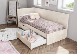 Кровать Лео — это практичное и элегантное решение для детской комнаты, которое идеально впишется в любой современный интерьер. Обивка из велюра с хамелеон-эффектом не оставляет следов от рук, сохраняя безупречный внешний вид изделия на протяжении всего срока службы. Модель оборудована двумя вместительными выдвижными ящиками для хранения постельного белья, игрушек и других необходимых вещей.