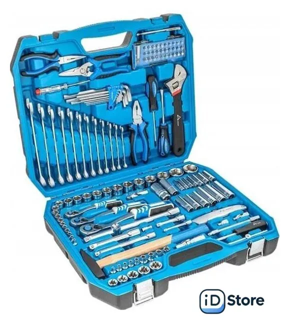 универсальный набор, 1/4", 3/8", 1/2", 131 предмет. Доставим по Минску в день заказа, при оформлении заявки до 14.00. Официальная гарантия.