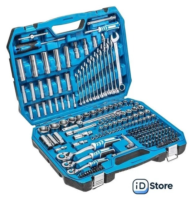 универсальный набор, 1/4", 3/8", 1/2", 222 предмета. Доставим по Минску в день заказа, при оформлении заявки до 14.00. Официальная гарантия.