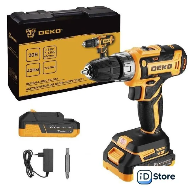 Дрель-шуруповерт Deko DKCD20-Li 085-1123 (с 2-мя АКБ, кейс)