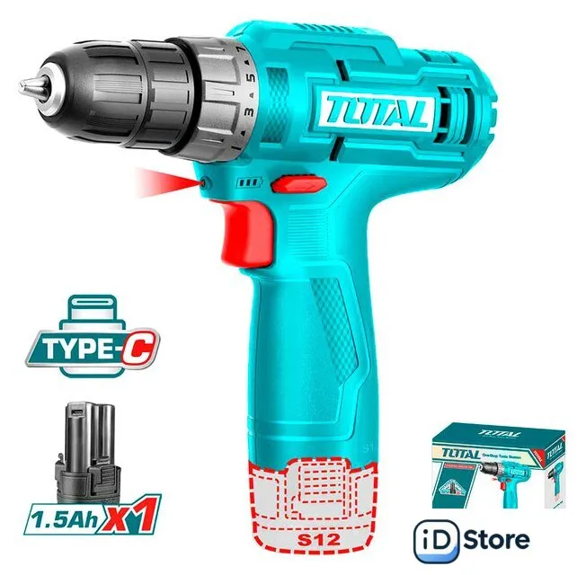 Дрель-шуруповерт Total TDLI12428 (с 1-м АКБ, без ЗУ)
