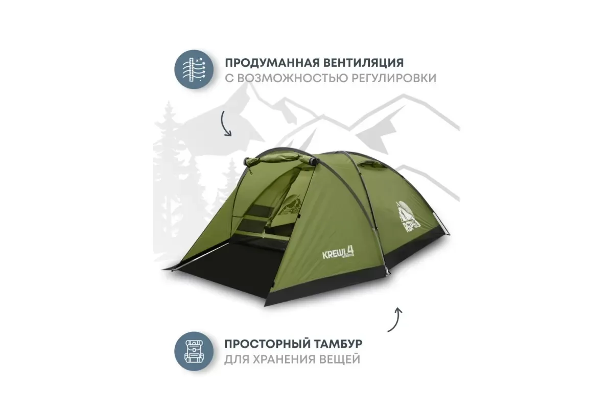 Палатка RSP Krewl 3 — трехместная трекинговая модель для походов и семейного отдыха на природе. Благодаря небольшому весу и компактным размерам в сложенном виде она подходит для пеших походов, велосипедных и мотоциклетных путешествий.