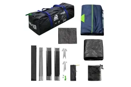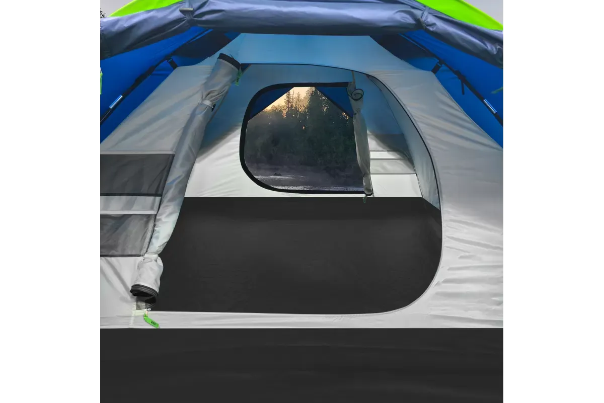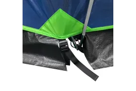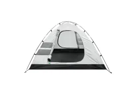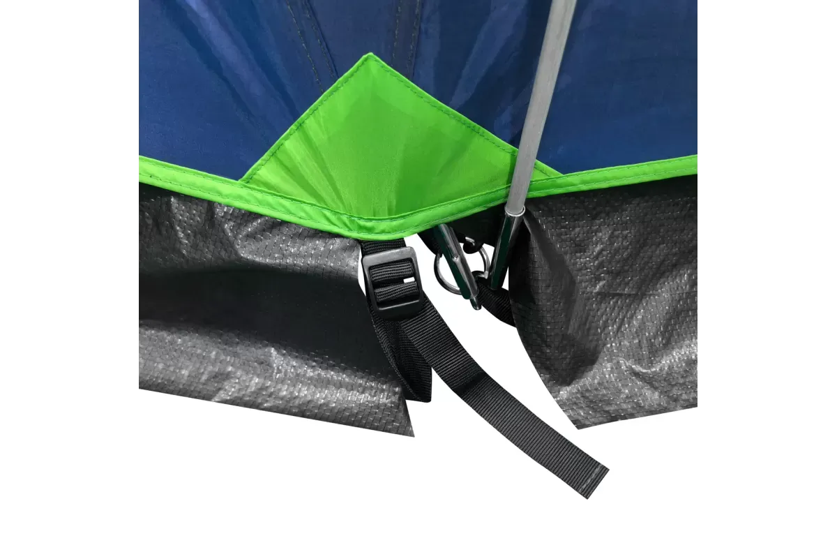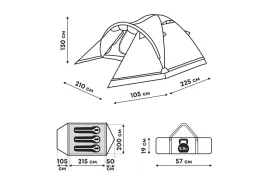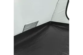 В комплекте 8 оттяжек со светоотражающей нитью и колышки. Два тамбура, передний со съемным полом и дополнительной дугой. Снежная «юбка» по периметру. Двери и клапаны на крыше с москитной сеткой. В спальне карманы и подвесная полка. Вентиляционные клапаны регулируются в двух положениях.
