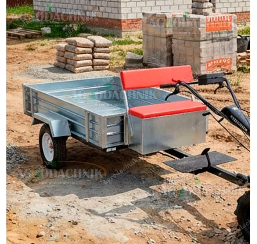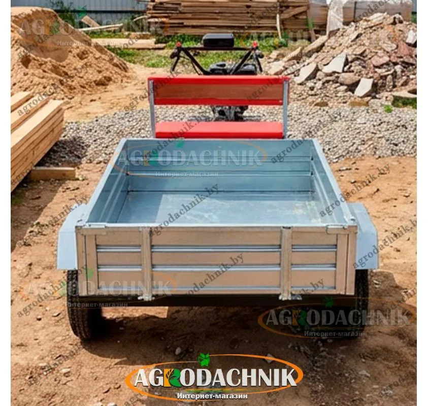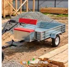 Прицеп ТМ-1700: Максимальная вместимость для мотоблока - Если стандартной тележки вам уже мало, и требуется перевозить объемные грузы, такие как сено, длинные доски или строительный мусор, обратите внимание на модель ТМ-1700. Это старшая версия в линейке оцинкованных прицепов, которая предлагает увеличенные габариты кузова и повышенную грузоподъемность. Рама усилена с расчетом на вес до 600 кг, а площадь платформы более 2 квадратных метров позволяет загрузить все необходимое за один рейс. Это надежный помощник для фермера и владельца большого участка. Оцинкованный кузов-самосвал Главное преимущество этой серии - материал бортов. Они изготовлены из оцинкованной стали, которая не боится коррозии, царапин и перепадов температур. Ваш прицеп будет выглядеть как новый даже после нескольких лет хранения на улице. Конструкция предусматривает механическое опрокидывание. Вынув стопорный палец на дышле, вы можете легко наклонить кузов назад и выгрузить песок, гравий или перегной без использования лопаты. Больше места для груза Размеры грузовой платформы составляют внушительные 1700 мм в длину и 1200 мм в ширину. Это позволяет перевозить нестандартные предметы, которые не помещаются в обычные тележки. Задний борт откидывается, что дает возможность транспортировать грузы, выступающие за габариты (например, длинные доски). Высота бортов 28 см оптимальна для сыпучих материалов. Усиленная база и безопасность Для удержания тяжелого прицепа на склонах используется надежная ленточная тормозная система. Педаль управления находится в удобном доступе для ноги водителя. Тележка комплектуется колесами 4.5x10 дюймов, которые немного шире стандартных, что улучшает устойчивость под нагрузкой. Ступицы универсальны, поэтому вы всегда можете поставить колеса от мотоблока (5x10 или 6x12) для повышения проходимости. Паспорт изделия Нажмите на изображение, чтобы скачать руководство по эксплуатации (PDF): Грузовик для мотоблока Прицеп ТМ-1700 - это выбор тех, кто ценит масштаб. Большая вместимость, защита от коррозии и прочная рама делают его незаменимым при строительстве и уборке урожая.