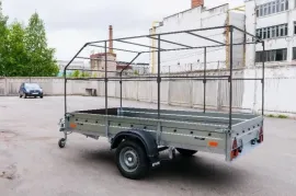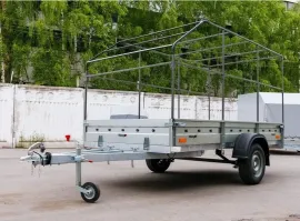 - Задний и передний борт открываются вровень с полом прицепа. Борта выполнены из оцинкованного стального листа 1 мм толщиной с усилением ребром жёсткости.