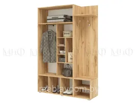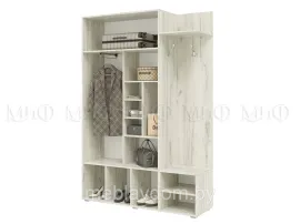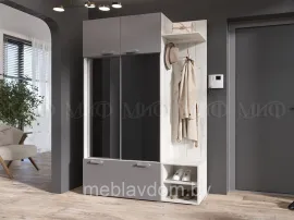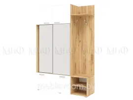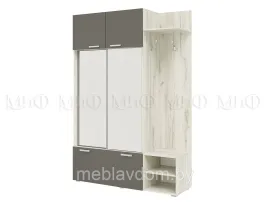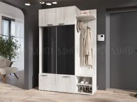 Мебельная конструкция «Стелла» значительно улучшит не только внешний вид, но и функциональность вашей прихожей. Высокий шкаф с выдвижной штангой идеально подойдет для хранения сезонной верхней одежды, а антресоли — для коробок с аксессуарами. Все это можно скрыть за створками на роликовых направляющих. На створках установлены зеркала, что будет особенно полезно в небольших прихожих. Нижние полки предназначены как для открытого, так и для закрытого хранения обуви. Створки нижних полок оснащены газлифтами. Нет необходимости покупать новый пуф — для комфортного обувания можно использовать открытую часть конструкции.