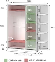 Габаритные размеры шкафа: 2200х1850х650 мм.