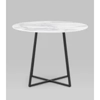 круглая, 100x100 cм, высота 76 cм, материал: МДФ (столешница), металл (опоры), белый мрамор/черный. Возможны дополнительные скидки : при заказе комплекта из нескольких наименований, при повторной покупке в нашем магазине