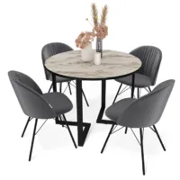 стол+4 стула, круглая, 238*206*76 см, материал: МДФ (столешница), микровелюр (обивка), пластик, металл (опоры). Возможны дополнительные скидки : при заказе комплекта из нескольких наименований, при повторной покупке в нашем магазине