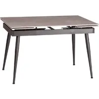прямоугольная, раздвижной, 1200x800 мм, высота 750 мм, в разложенном виде 1800x800x750 мм, материал: керамика (столешница), металл (опоры), серый/рисунок. Возможны дополнительные скидки : при заказе комплекта из нескольких наименований, при повторной покупке в нашем магазине