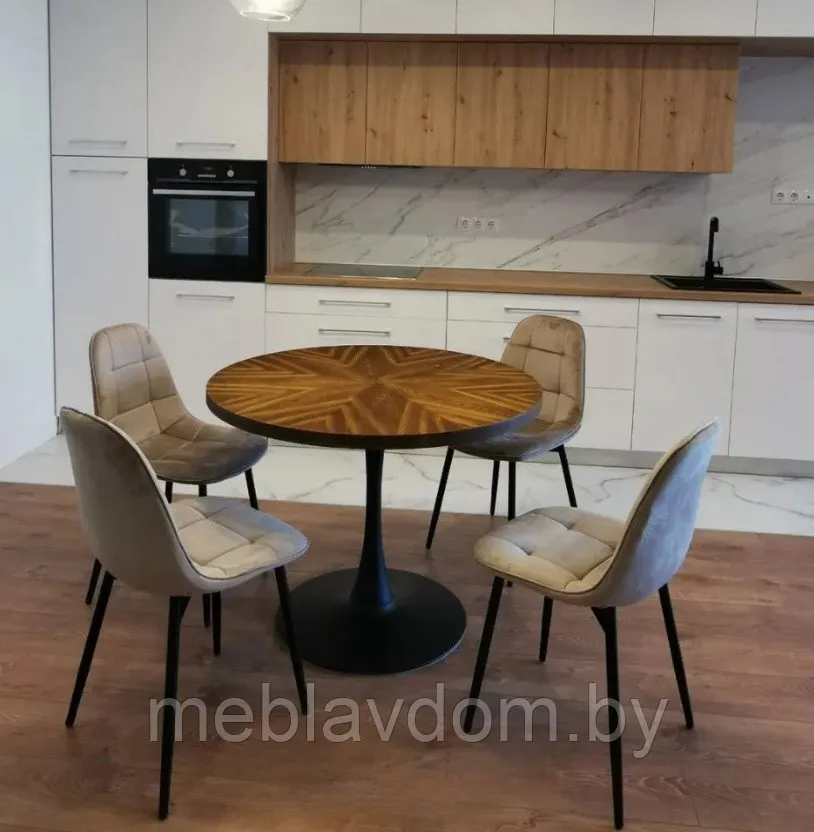 Этот стол выглядит потрясающе благодаря столешнице цвета ореха с узором в виде звезд. Столешница изготовлена из высококачественного МДФ и натурального шпона.