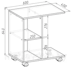 Габаритные размеры: 600х400х640 мм. (ВхШхГ). Материал: каркас – ламинированная ДСП, кромка – ПВХ 0,45мм
