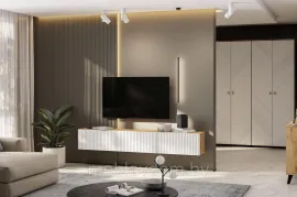 Тумба под ТВ NN Мебель (МС Байкал К) Дуб Золотой/Белый матовый