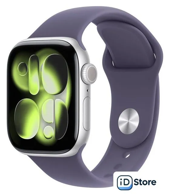 Умные часы Apple Watch Series 11 42 мм (алюминиевый корпус, серебристый/фиолетовый туман, спортивный силиконовый ремешок M/L)