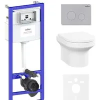 подвесной, конструкция: без бачка, задний подвод воды, горизонтальный выпуск, двухрежимный слив, с сиденьем. Возможны дополнительные скидки : при заказе комплекта из нескольких наименований, при повторной покупке в нашем магазине