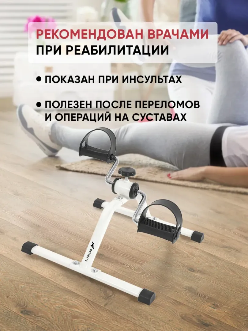 Ритм жизни современного человека с плотным графиком почти не оставляет времени на фитнес в спортивном зале и прогулки. Идеальным решением станет аналог велосипеда в упрощенной форме - педальный велотренажер. Компактный спортивный тренажер для дома не займет много места. Велотренажер для дома тренирует ослабленные мышцы, улучшает кровообращение. Педальные реабилитационные тренажеры нередко используют для разработки рук и ног у людей с ограниченными физическими возможностями - пациентов в процессе реабилитации, инвалидов, пожилых пользователей. Предусмотрена простая механическая регулировка нагрузки. Складной велотренажер удобно хранить дома или на даче и легко переносить. Мини велотренажер сделает тренировку приятной и эффективной. При занятии обязательно использовать стул. Нельзя вставать на мини-велотренажер всем весом во избежание травм. Минивелотренажер кардио силовой поможет вам восстановиться при реабилитации. Он удобный и легкий в использовании. Педальная система для ног и рук. Этот велосипед мини полезное средство для фитнеса и спортивной тренировки, так как помогает развивать силу рук и здоровье ног, а также поддерживает хорошую форму. Простой механический дизайн позволяет легко поддерживать тренировки в домашних условиях. Спортивная система обеспечивает полезную реабилитацию. Если вы ищете полезный спортинвентарь для мышц рук и ног, велотренажер мини для вас. Складной и легкий в использовании, он поможет вам в фитнесе и реабилитации после операции. Универсальный тренажор имеет механическую систему, которая позволяет вам тренировать руки и ноги одновременно. Используйте лфк инвентарь для укрепления мышц и суставов, улучшения кровообращения и силы, а также для похудения женщин и мужчин. На этом домашнем тренажёре вы можете выбрать направление вращения педалей и скорость вращения. Наслаждайтесь вашими тренировками в домашних условиях или в офисе!• ВНИМАНИЕ! • В связи с ребрендингом производителя товар поставляется под новым брендом «Willman» вместо «Classmark»